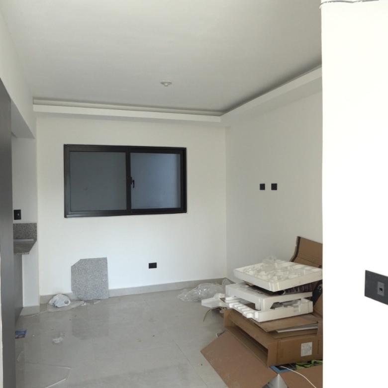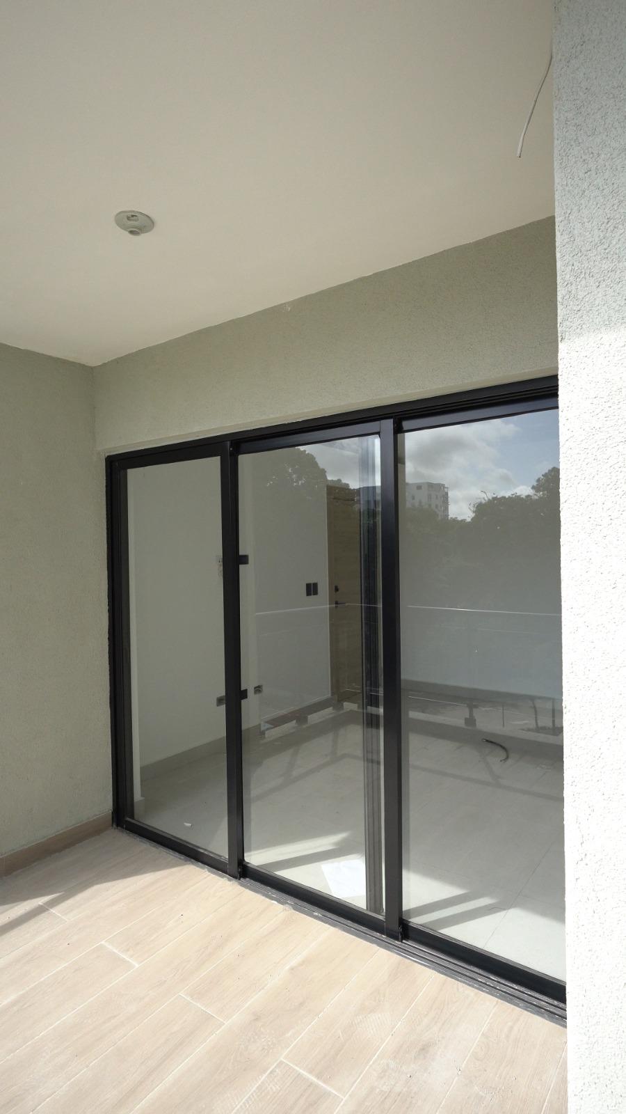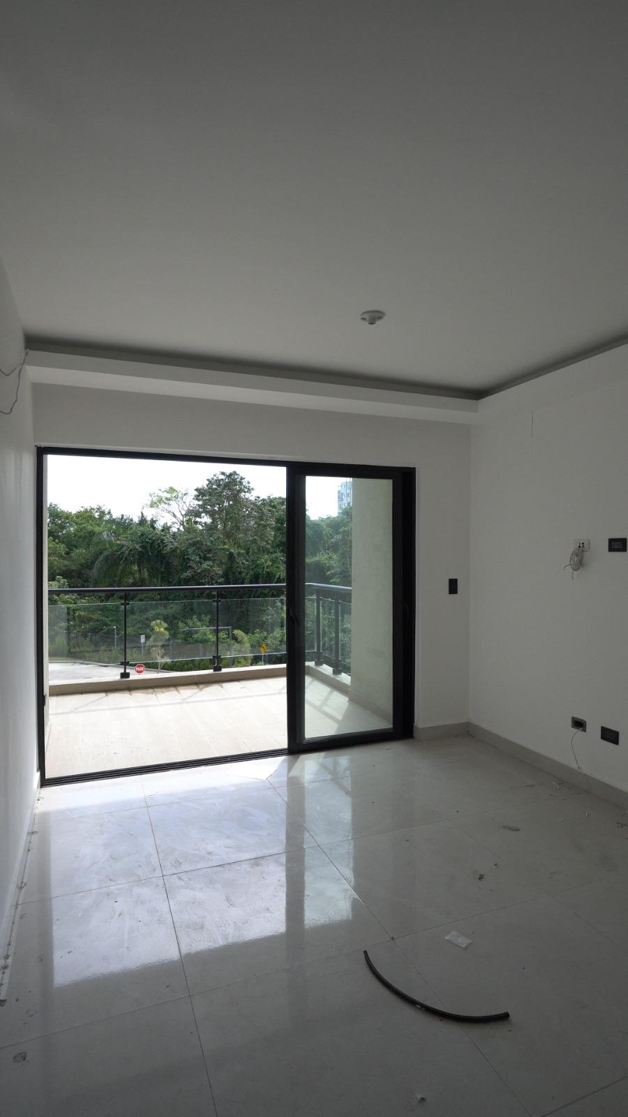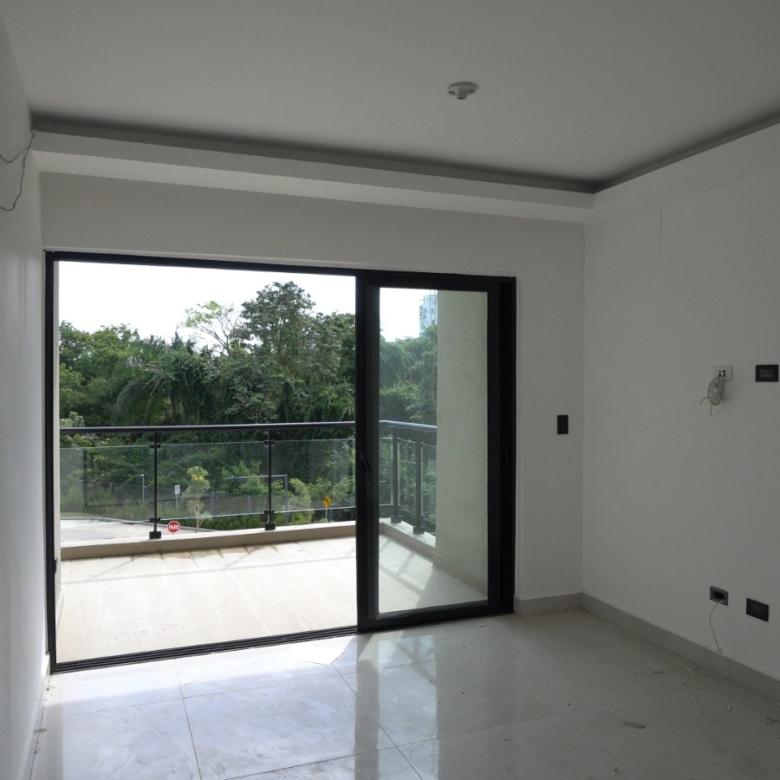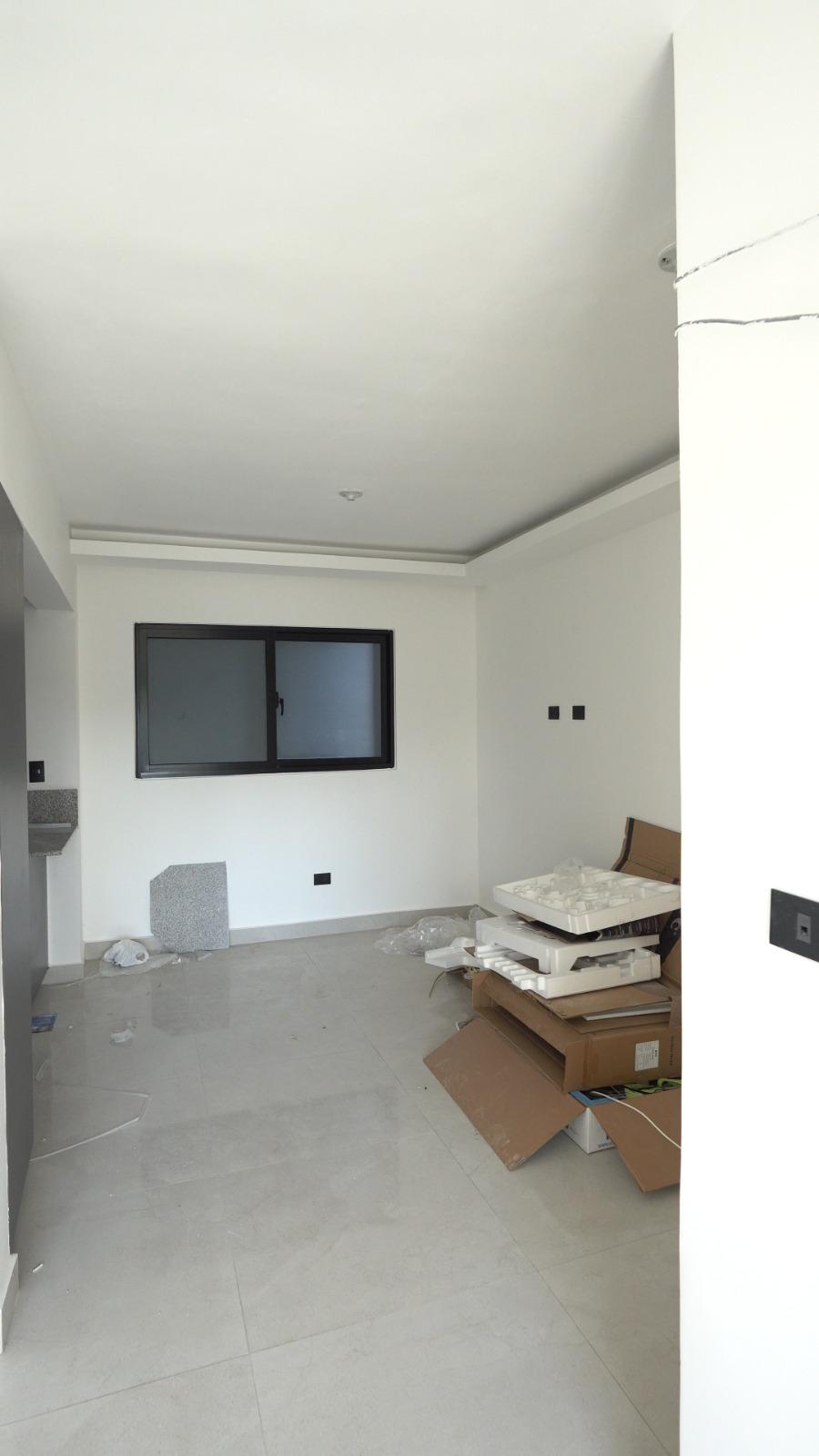 Dispone de habitación principal con balcón, balcón principal, cocina equipada con horno, estufa y extractor, además de techos en sheetrock que aportan un acabado limpio y contemporáneo.