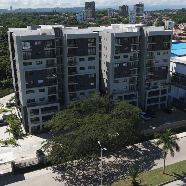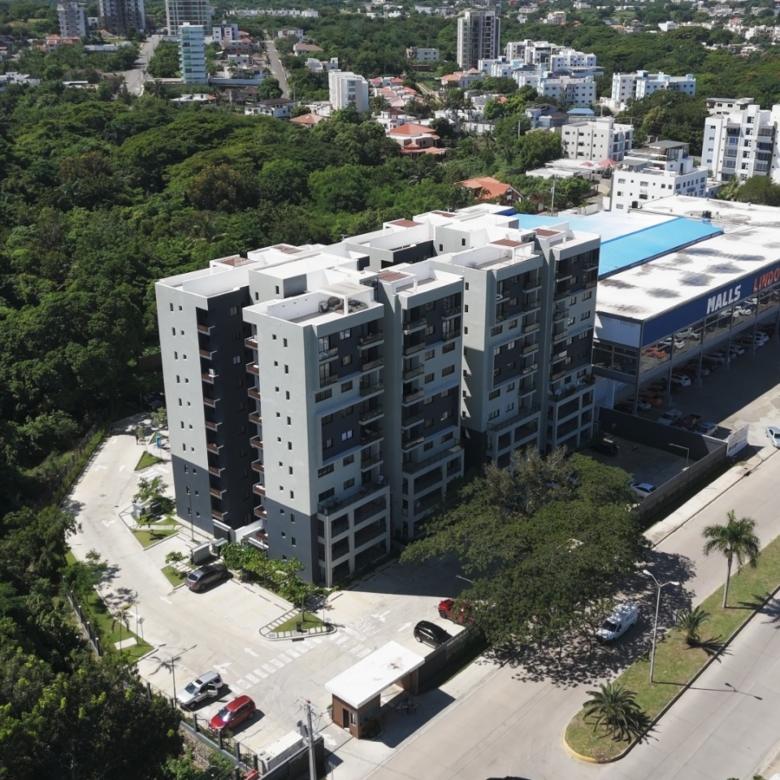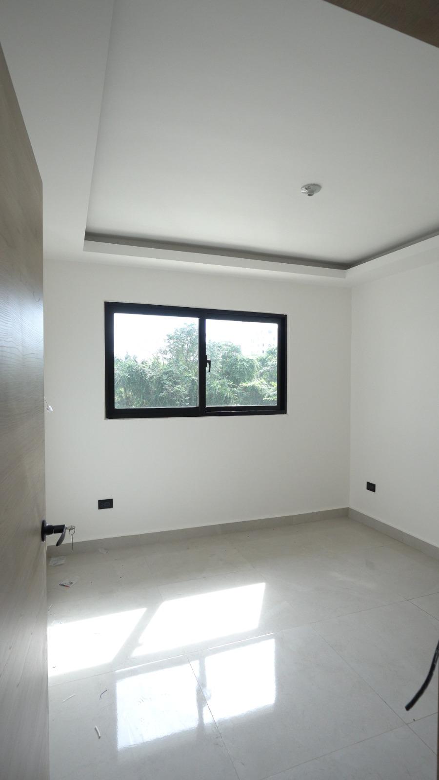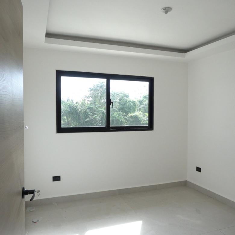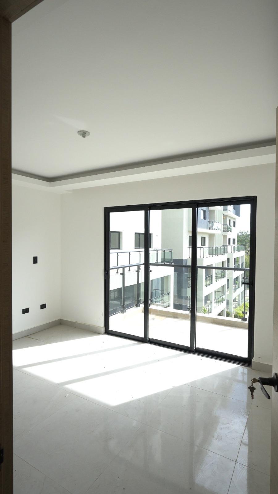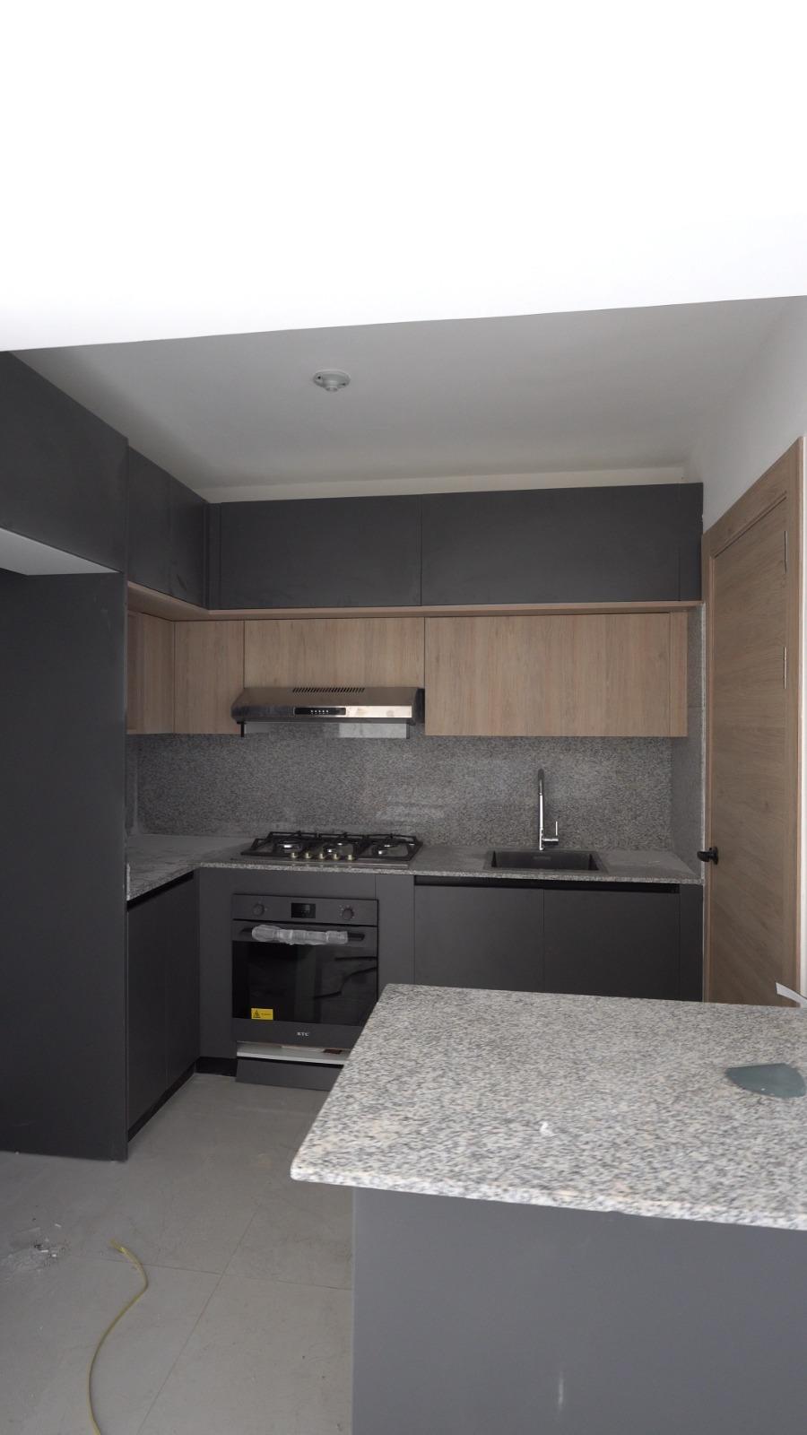 Dispone de habitación principal con balcón, balcón principal, cocina equipada con horno, estufa y extractor, además de techos en sheetrock que aportan un acabado limpio y contemporáneo.