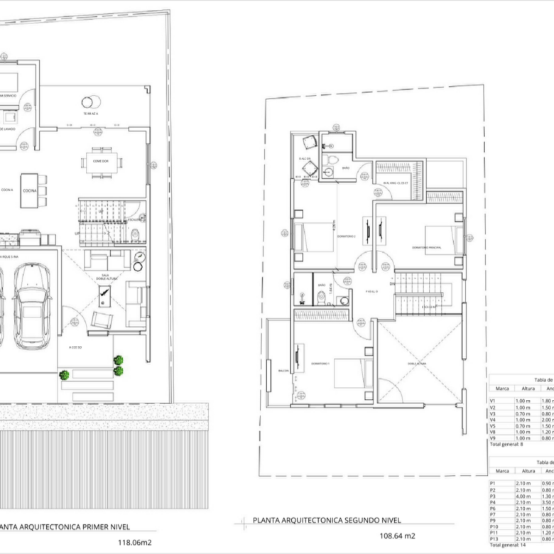 La construcción abarca dos niveles, distribuidos de la siguiente forma: