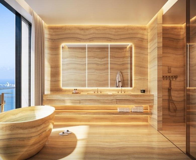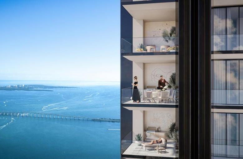 Proyecto residencial de lujo súper alto, con 1,049 pies de altura y 259 unidades híbridas de condominio-hotel.