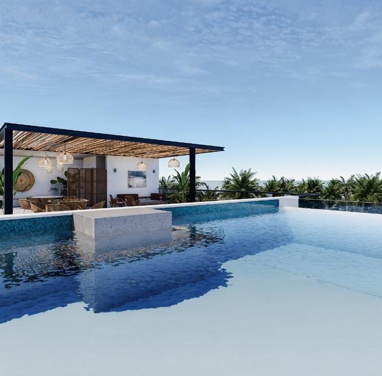 El Proyecto cuentan con una Área Social con Vista al Mar, Infinity Pool y Terraza con BBQ en el 4to Piso, Cocina Modular Equipada con Estufa, Horno y Extrtactor, Aires Acondicionados en Habitación y Sala, Ventanas con Anti-Insect Screen, Aire Acondicionado en la Habitación y Sala, Cerradura Inteligente en la Puerta Principal, Starlink Internet en las áreas Comunes.