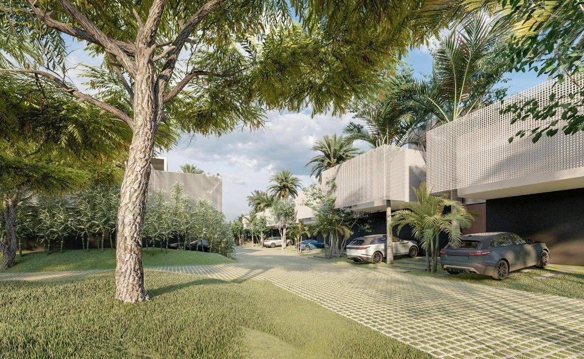 El paisajismo del proyecto ofrece visuales refrescantes, jugando con el volumen de las casas y brindando intimidad a las unidades; el uso de cristales en gran formato permite que tanto la iluminación como la ventilación sean protagonistas en sus espacios.
