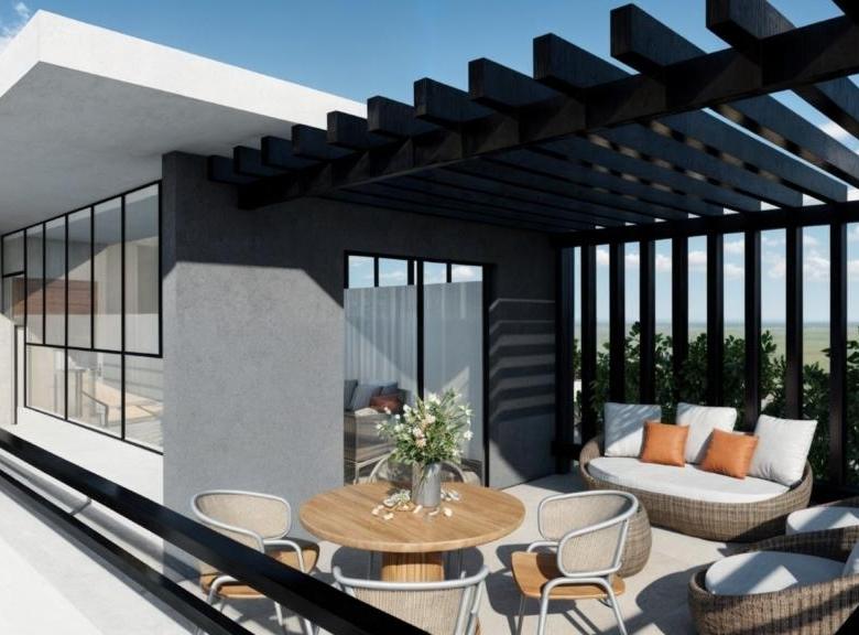 Apartamentos de 100 a 105 metros cuadrados, cuyos primeros niveles con Patios y azoteas con sus terrazas (Pergolado)