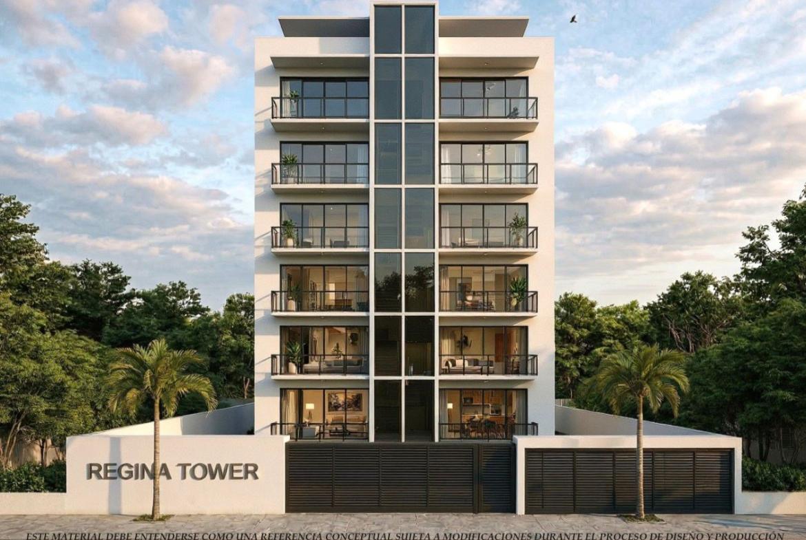 La Torre Residencial Regina Tower es un proyecto familiar que contará con una torre de 6 niveles con elevador y area social en el ultimo nivel. La torre se estará desarrollando en el sector de Los Llanos de Gurabo, Santiago.