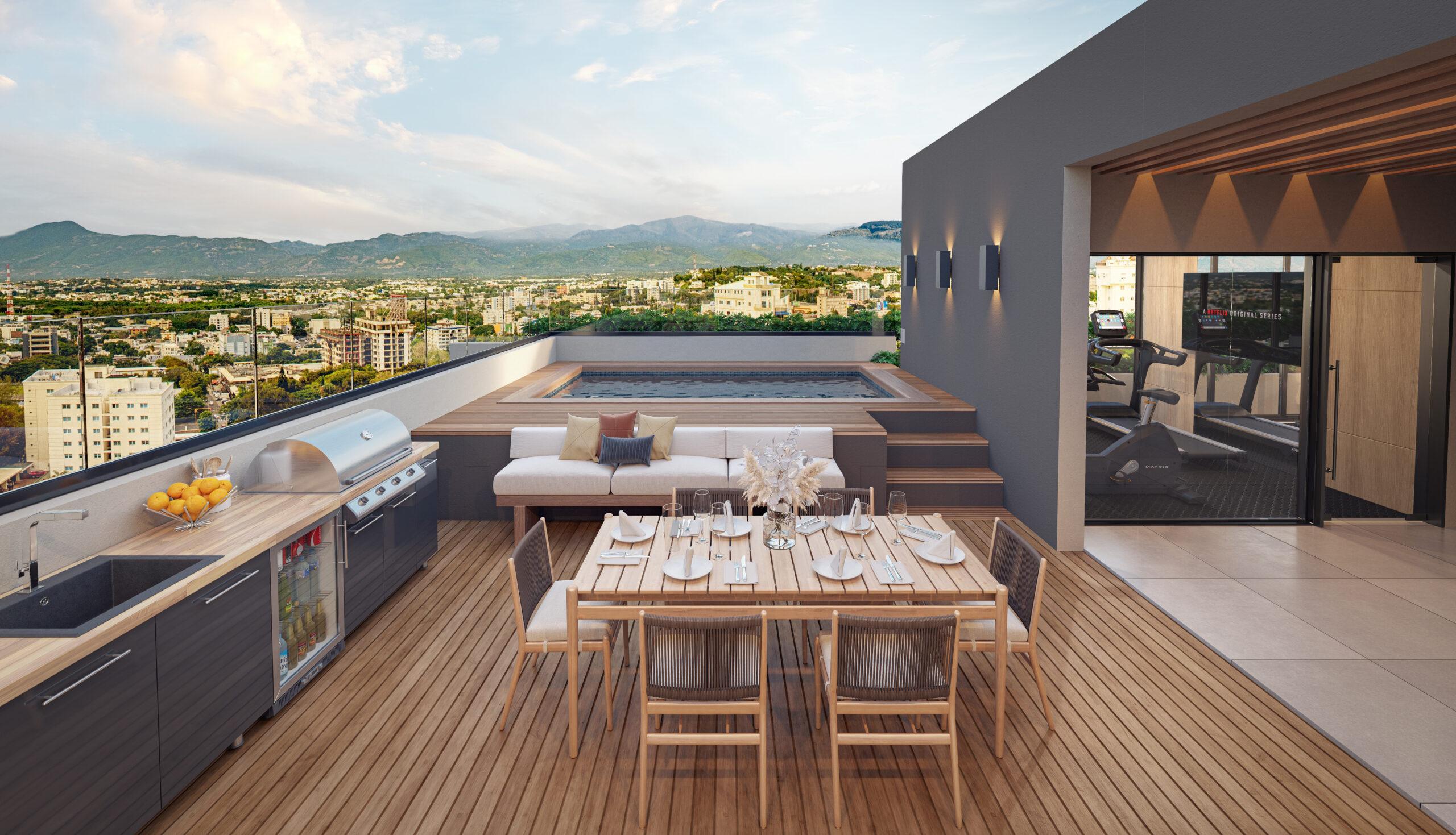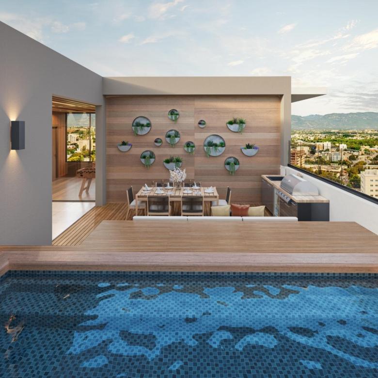 El condominio SOHO Tower estará ubicada en la exclusiva urbanización Thomen, Santiago, Soho es una torre residencial que redefine la vida urbana con un diseño arquitectónico moderno y distintivo. Su fachada se convierte en un sello visual gracias a los ventanales de piso a techo y balcones que aportan amplitud, frescura y luz natural a cada apartamento.